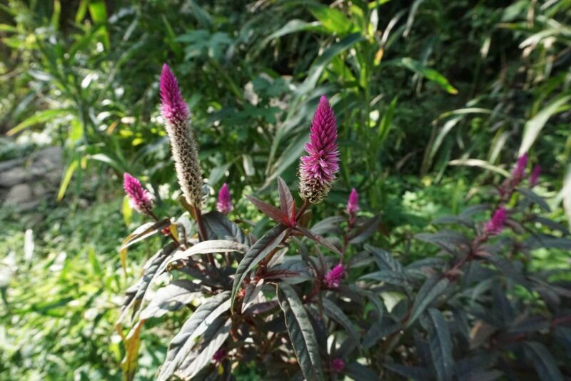 青葙,是一眼容易辨認的植物,尤其容易在寬闊的農用旱地與乾溪溝中發現。那深綠偶帶紅暈的莖葉襯托著鮮豔紫紅色的穗狀花序,就像保衛土地的戰士,高舉紫紅長劍,向天空與大地分享著勝利的喜悅,滿受蝴蝶與蜜蜂擁戴,在那秋冬逐漸沉睡的乾溪溝中,仍然熱鬧非凡!