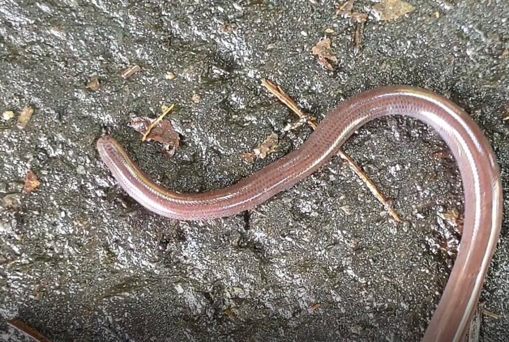 打掃落葉堆時發現鉤盲蛇快速扭動身體,大小、形狀和扭動的姿勢和蚯蚓相似,因此常被誤認。