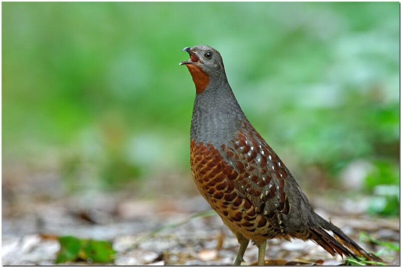 竹雞是里山環境中很常見的一種鳥類……好啦,其實說常見也不太正確,因為竹雞生性害羞,大多都躲在森林、灌木叢內,加之其身上的顏色巧妙融入棲息環境中,所以數量雖多但很難實際目賭他的身影,不過山上混久了,總還是有些「意外」的好處,有一次在騎車前往自然谷的路上發現路邊有不小騷動,定睛一瞧,原來是竹雞家庭被我突然的到來干擾,急忙的從路邊鑽回邊坡的樹叢中,母竹雞速度很快,沒一會就不見蹤影,然而跟在他後面的幾隻小竹雞可就慘了:半跑半跌,踉蹌的逃回森林,看他們慌張的模樣讓我覺得又好笑又不好意思,不小心打擾他們悠閒的午後散步了。在自然谷除了偶爾能看到他們逃跑的樣子外,他們也是我們紅外線攝相機常見的主角。在檢查記憶卡時,看到他們一臉悠哉的排隊經過鏡頭,有時落在後面的小竹雞,還會快步跟上隊伍十分滑稽。竹雞平常以小群體在森林底層或灌木叢中覓食。他們的食性多樣:嫩葉、嫩芽或是小昆蟲甚至連全株有毒的姑婆芋竟也在他們的菜單中。每當夏天來臨,姑婆芋蠟蠋般的果實陸續成熟,竹雞就會跑到植株下方,以半飛半跳的方式抬頭將一粒粒紅透的果實啄入肚中。而在地面活動的竹雞,在入夜後會跟雞一樣飛到樹葉茂密的樹上睡覺以減少天敵的侵擾,有時他們還會幾隻並靠在一起「靠燒(台語)」共宿,光用想的就覺得畫面有趣。