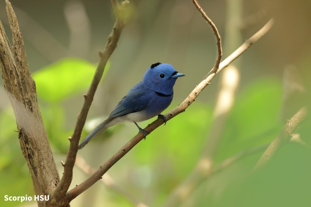 說起與黑枕藍鶲的初次相遇,是在一次新竹市金城湖的賞鳥活動中。那天,我與鳥會的夥伴們沿著湖邊道路緩步而行,耳邊傳來四面八方的鳥鳴聲,有些熟悉,有些則既陌生又新奇。突然,一位鳥友驚呼:「聽!有黑枕藍鶲的叫聲!」對當時還是賞鳥新手的我來說,是個全然陌生的名字。經由其他夥伴的介紹,我才知道,牠是一種會在林間靈活穿梭的「藍色小精靈」。為了親眼目睹牠的身影,我們開始仔細尋找。沒多久,便在約二十公尺外的矮灌木叢中發現了牠。我立刻舉起相機,透過觀景窗看到的是一隻宛如穿著藍染布衣的可愛小鳥,這也難怪牠有著「染布鳥」的別稱。