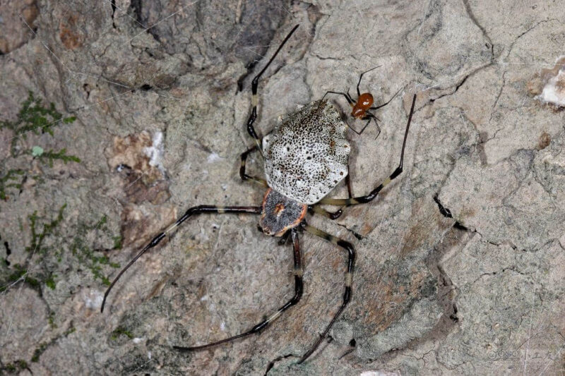 說到自然谷環境信託基地的蜘蛛,其中令我印象最深刻的就是棲息在芒果樹身上的裂腹蛛了,淡褐色的身體跟周圍地衣的顏色融為一體,若不專注尋找很難發現他的存在。而他的織出網也十分特別,只有在特定的角度才能發現。每次在自然谷的解說導覽時,我都會請參訪的伙伴們找找芒果樹身上的奇特蜘蛛網,好讓大家打開觀察之眼。