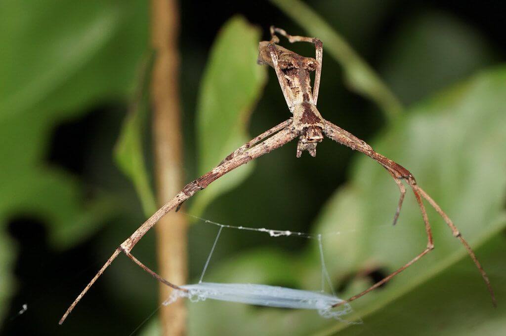 雙角鬼面蛛的捕捉網很膨鬆,就算是在收合的狀態還是很明顯。(攝影:徐瑞仙)