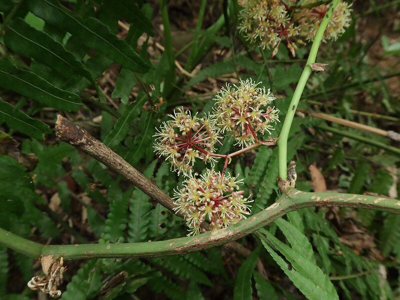 假菝葜的花型很特別,看起來像是許多向外綻放的球型煙火,顏色也是煙火常見的紅色、黃色,挺有祝賀新年的意味。假拔葜的圓錐花序由數個圓球狀的繖形花序所構成,每個繖形花序又是由10~25朵小花組成,形成花團錦簇的生殖枝。然而菝葜科實屬雌雄異株,雌花具有一枚三裂柱頭,雄花則具有六枚細長的花絲,因此不一定能在曾經繁花盛開的區域找到果實,也許我們看到的全都是雄株。