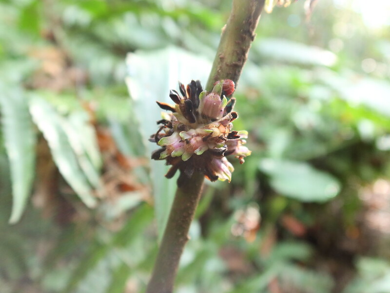 和精心布置的休閒農場截然不同,各種植物在自然谷步道上恣意生長,看似混亂卻有一些秩序——在日照條件、溫濕度相近的區域,可以找到相似的植物族群。本篇要介紹的「穿鞘花」即是自然谷中相當常見、又具特色的一種。