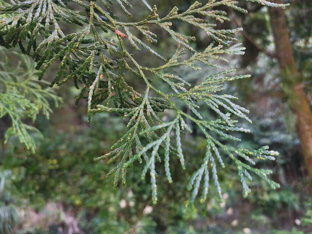 (左圖)台灣肖楠的葉是由「葉子」及「枝節」所組成。