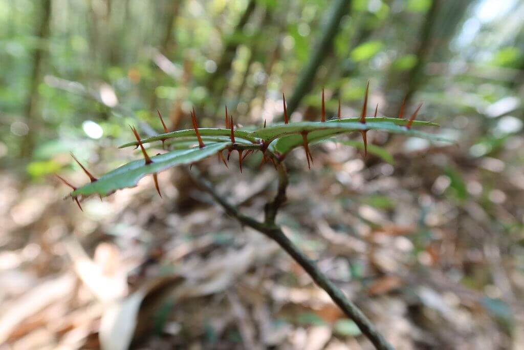 「雙面刺」顧名思義就知道它的特徵,查詢資料後得知雙面刺的葉片不一定長刺時其實滿驚訝的,有的只長一面,有的兩面都不長,尖刺主要是為了防止動物啃咬。